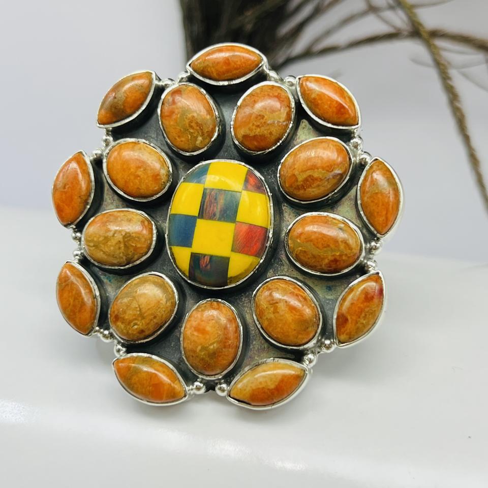 925 plata esterlina hecho a mano Checker naranja turquesa anillo clásico diseñador de moda anillo de bodas 925 Plata hecho a mano boda