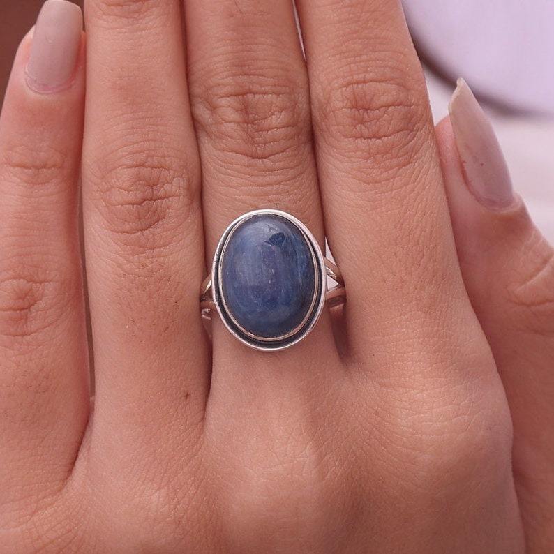 925 plata esterlina hecha a mano piedra preciosa azul cianita Spinner anillo joyería 925 estampado sólido mejor calidad anillo Natural joyería