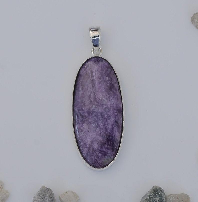 925 plata esterlina hecha a mano piedras preciosas Charoite Spinner colgante 925 sello estilo bohemio regalo de boda mejor diseñador colgante joyería