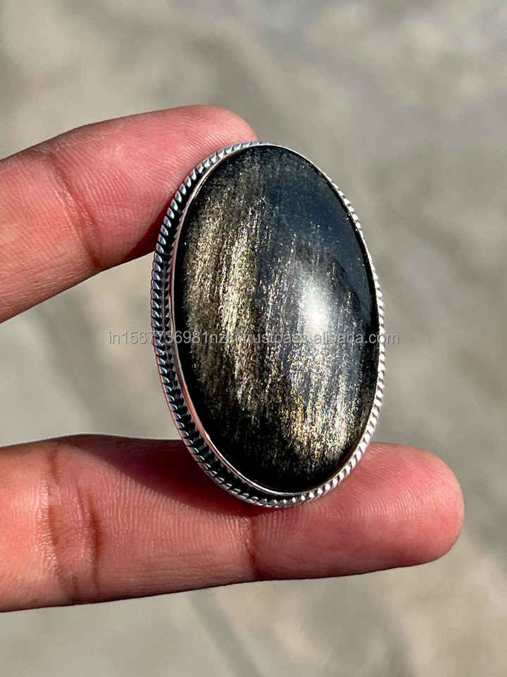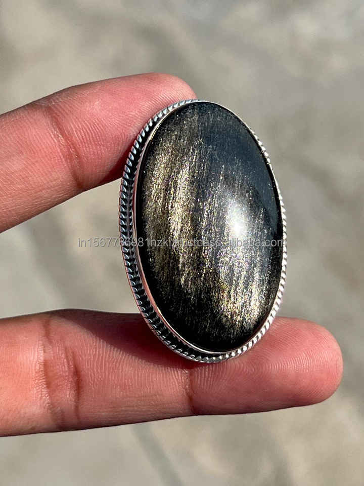 Nombre del producto:Anillo de Plata de Ley 925 obsidiana