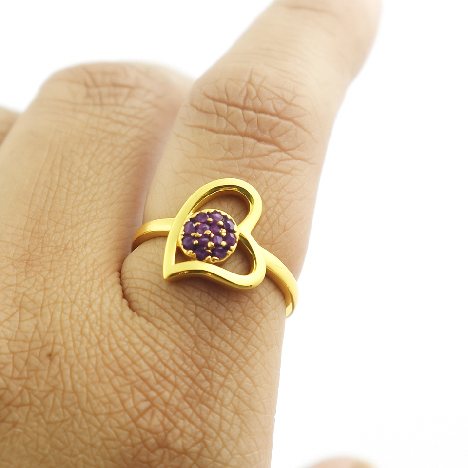 Anillo de amor elegante de amatista con forma de corazón de plata de ley 925 para mujer