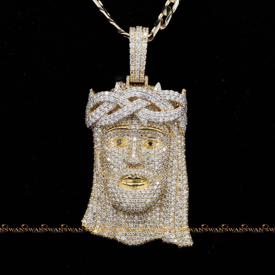 925 plata esterlina Jesús cabeza patrón joyería colgantes encantos corte brillante laboratorio cultivado diamantes rodio para fiesta moda