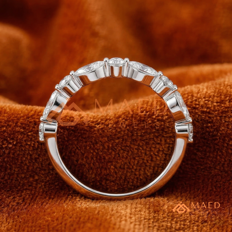 Anillo de Eternidad de Plata de Ley 925 con Diamantes de Laboratorio para Mujer, Anillo de Compromiso, Media Eternidad, Apilable, Aniversario, Corte Brillante Redondo