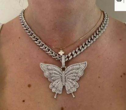 Colgante de moissanita de Plata de Ley 925 y encanto de laboratorio, Diamante helado, diseño de mariposa Hip Hop, joyería de moda