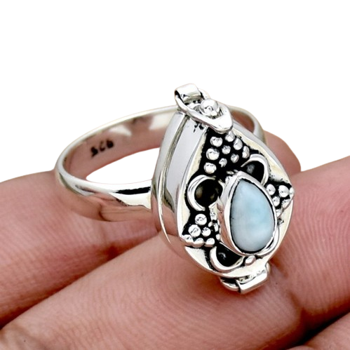 Anillo de Compromiso de Plata de Ley 925 con Piedra Preciosa de Larimar, Estilo Bohemio, Chapado en Rodio, Joyería Hecha a Mano