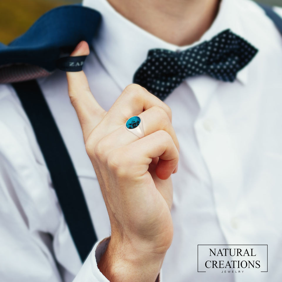 Anillo Ovalado de Plata de Ley 925 con Engaste de Shattuckita Clásico para Hombre, Hecho a Mano, Regalo Único para Él, Cumpleaños, Aniversario, Fiesta