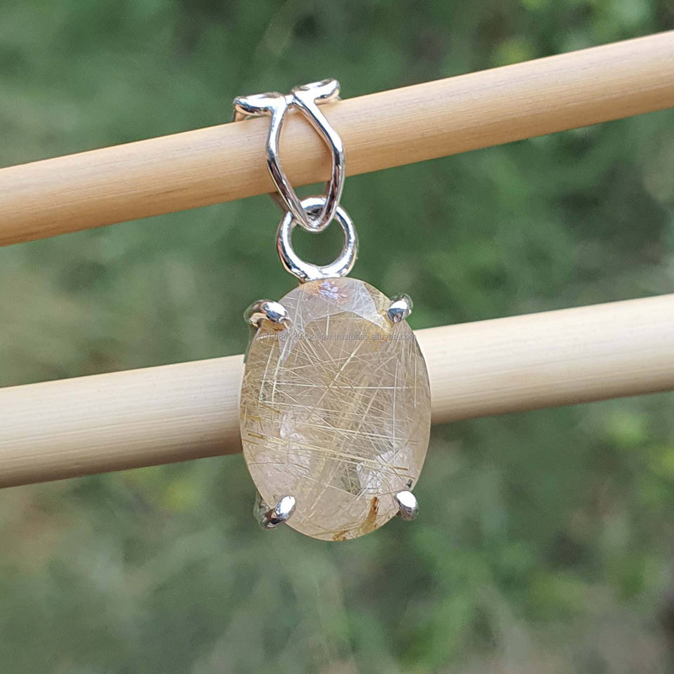 Product Name:Natural Gold Rutilated Quartz 925 Silver Pendant for Necklace