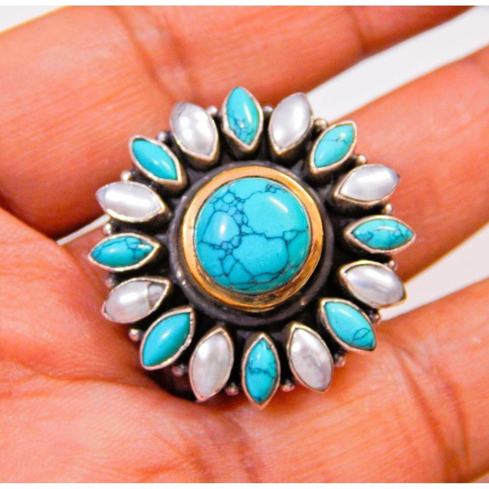 Anillo de Plata de Ley 925 perla de agua dulce Natural turquesa joyería de piedras preciosas hecha a mano para niñas mujeres regalo perfecto