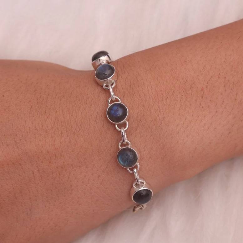 Nombre del producto:Natural labradorita piedras preciosas pulsera de plata