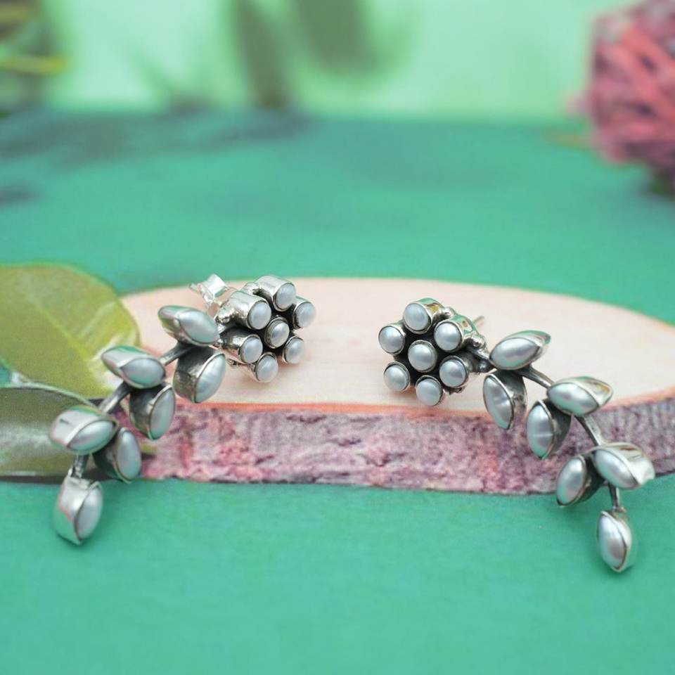 Pendientes de tuerca florales de perlas naturales de Plata de Ley 925, joyería ligera de piedras preciosas naturales para regalo de aniversario