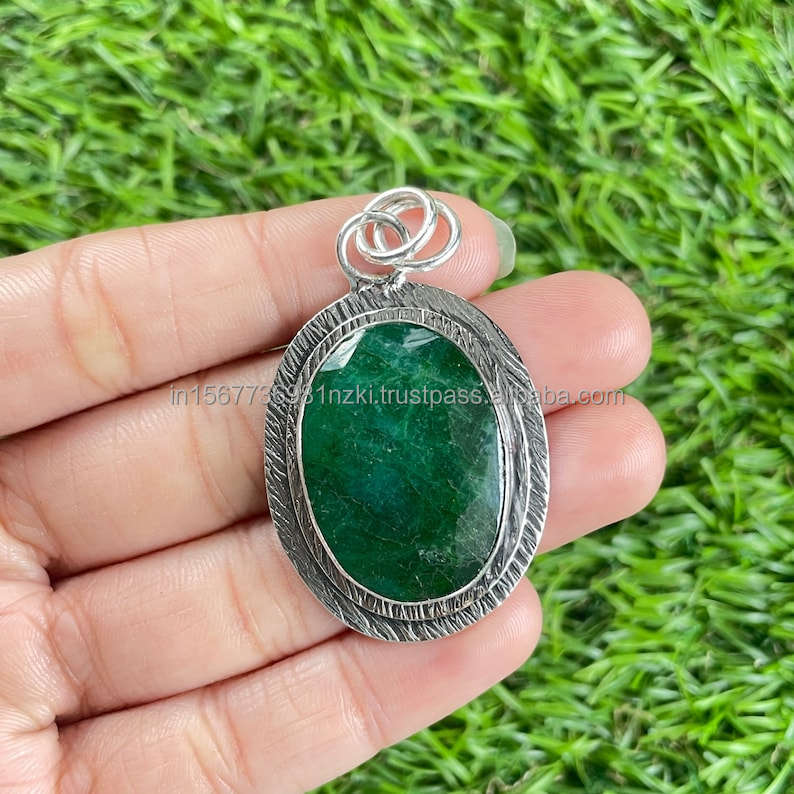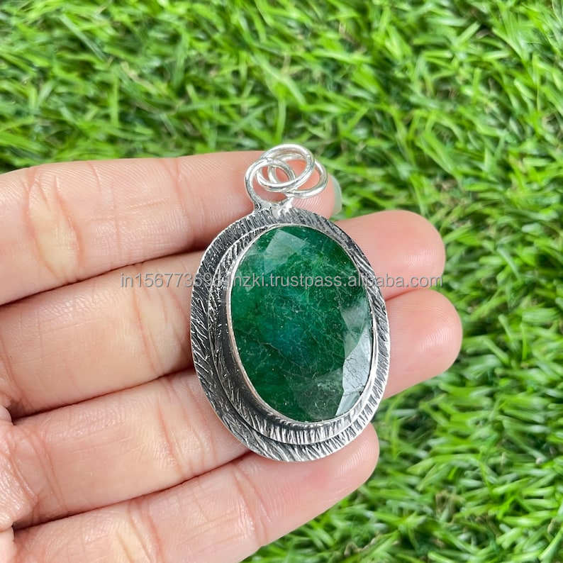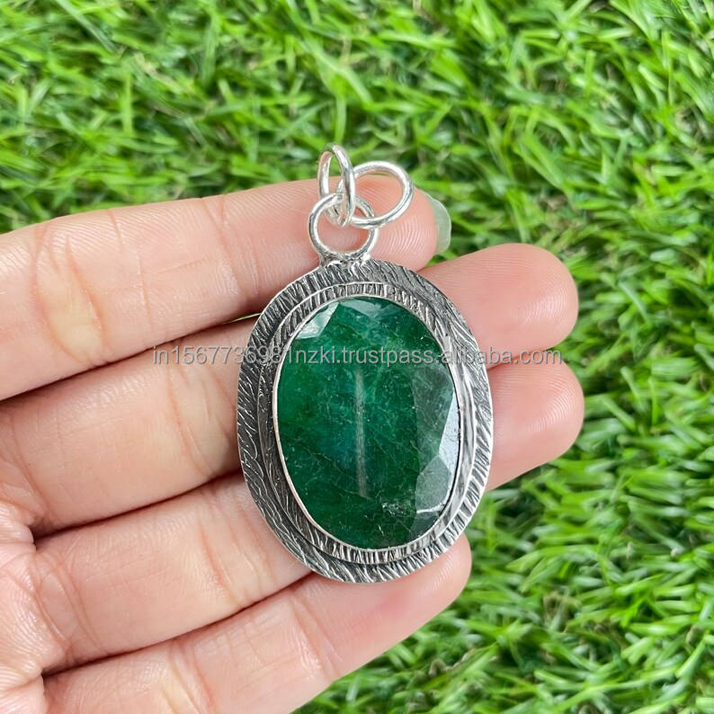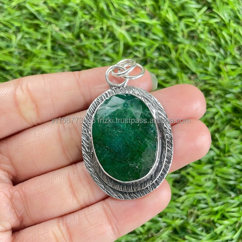 Colgante de Plata de Ley 925, colgante de piedras preciosas reales, colgante hecho a mano, regalo para novia, hermosa joyería de Esmeralda