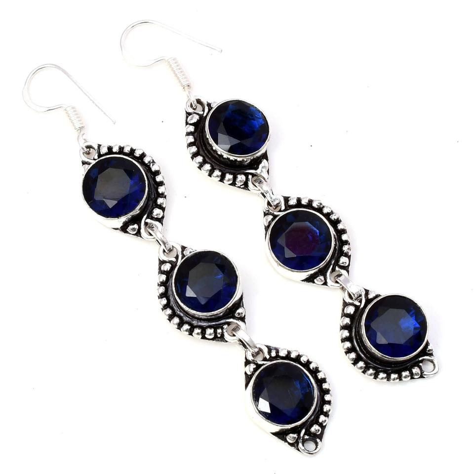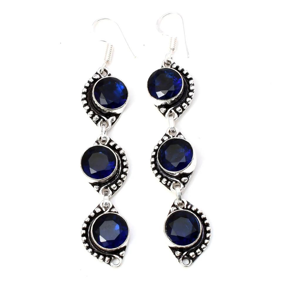 Product Name:Natural Sapphire Quartz Gemstone Silver Earrings