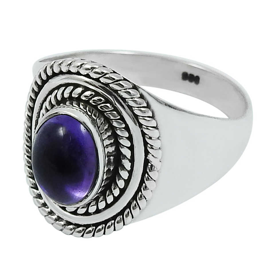 Anillos chapados en plata de ley 925 con piedras preciosas de amatista de corte ovalado natural, joyería de diseño estilo bohemio a precio de mayorista.