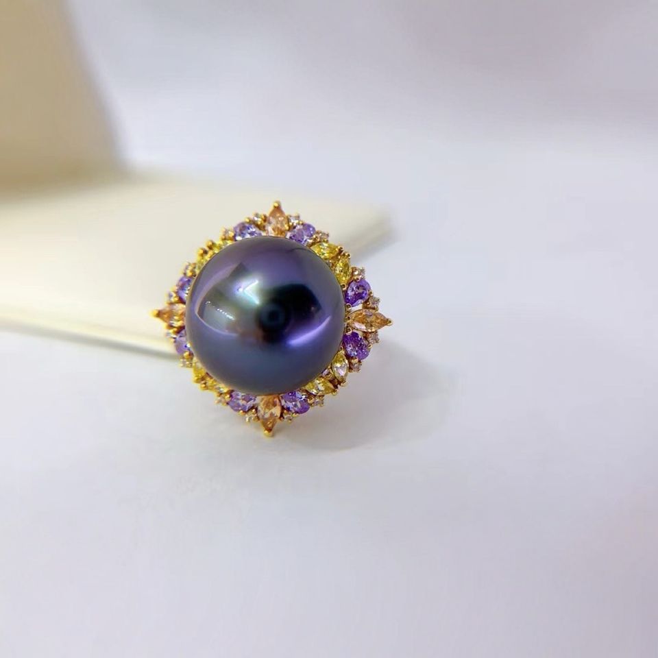 Anillo de Plata de Ley 925 con Perla Negra Premium de 13-12 mm, Redonda, con Gran Brillo y Casi Impecable, 100% Auténtica - Viene con Caja de Regalo