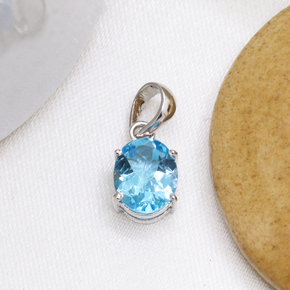 Item Name:Silver Jewelry Set With Natural Blue Topaz Gemstone