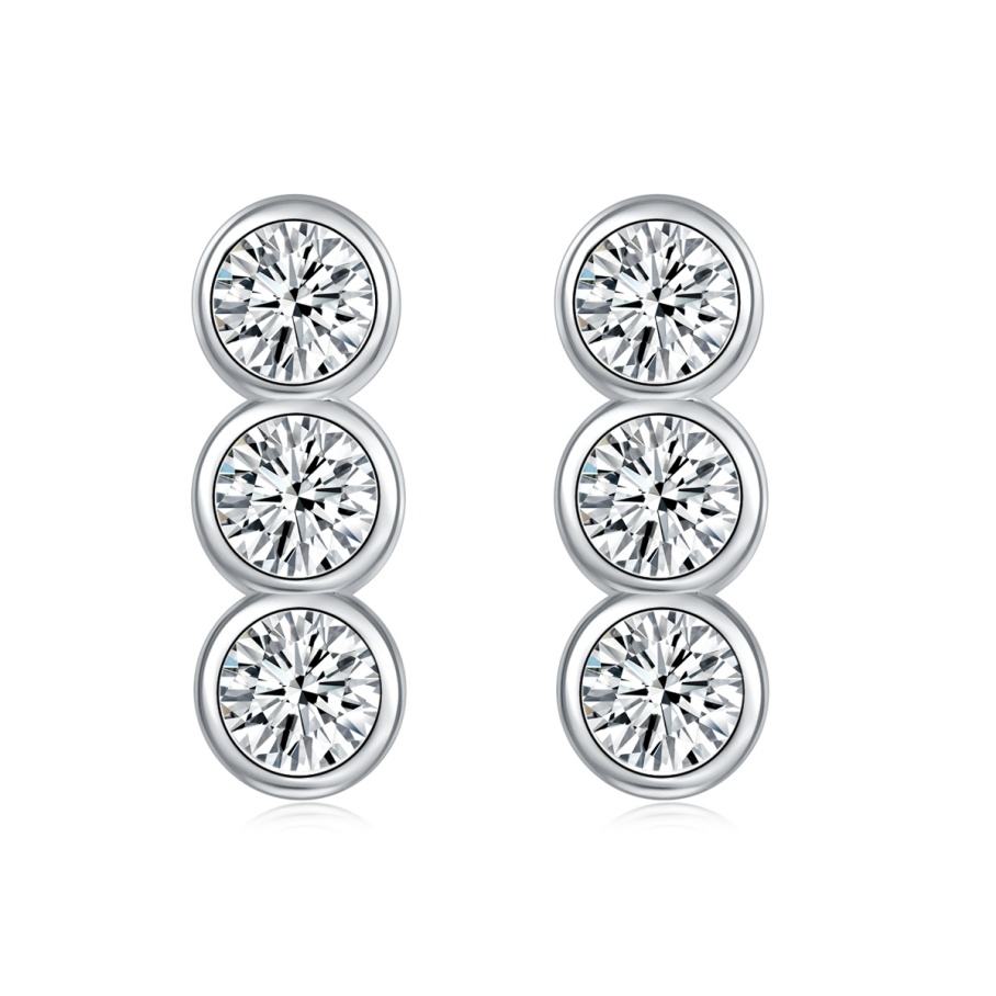 Conjunto de Joyería de Plata de Ley 925 con Zirconia Cúbica de Corte Brillante Redondo en Engaste de Puntas, Diseño Simple y Moderno para Boda o Regalo