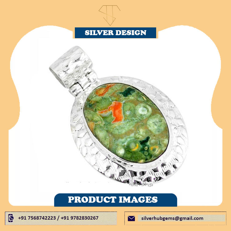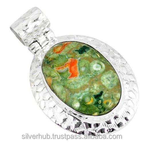 Nombre del Producto:Colgante de plata con jaspe riolita de la selva tropical