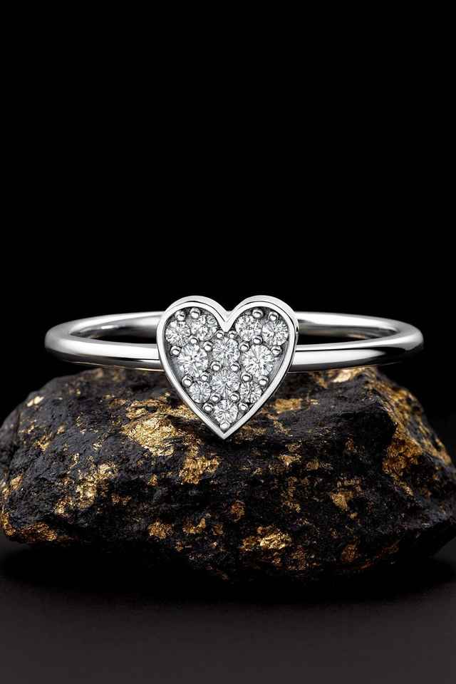 Anillo de Compromiso Minimalista de Plata de Ley 925 con Baño de Rodio y Oro Vermeil de 14K con Corazón de Circonita Cúbica, Joyería para Regalo de San Valentín