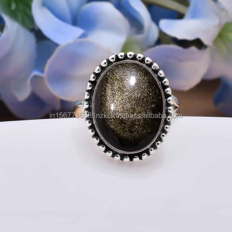 Nombre del producto:925 anillo de plata esterlina oro Sheen obsidiana