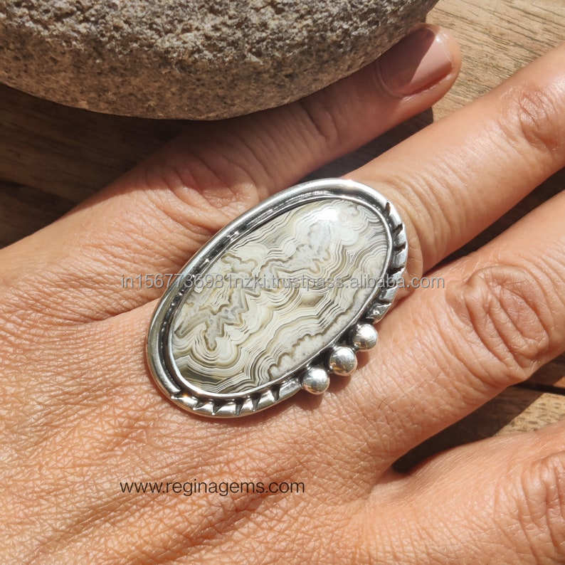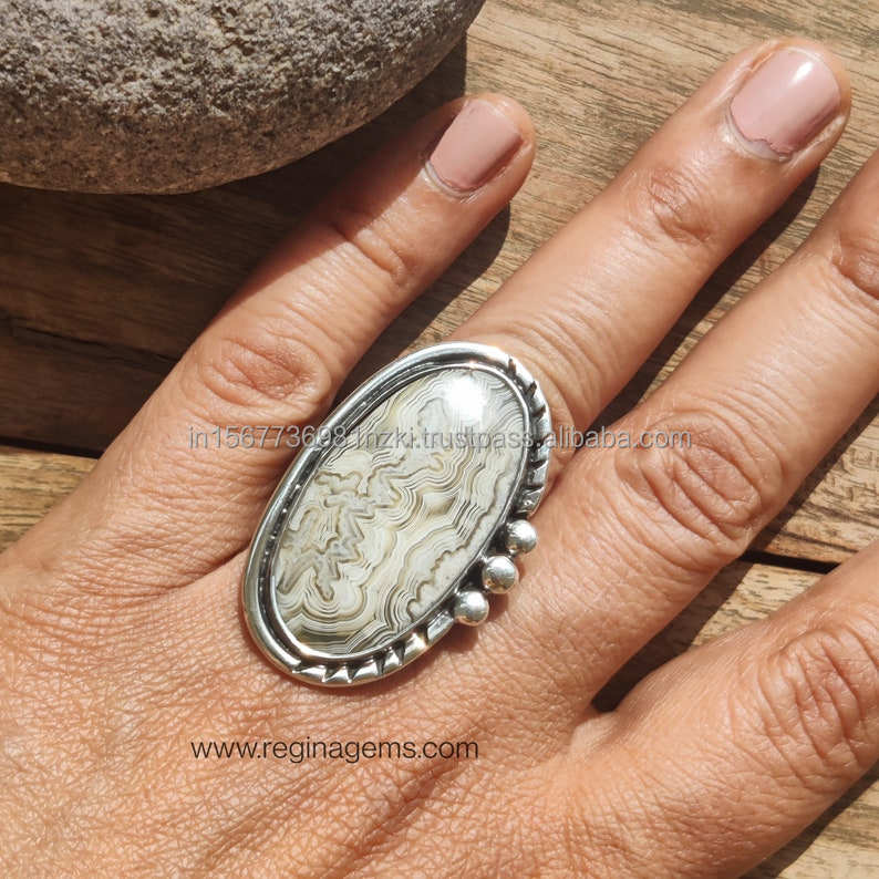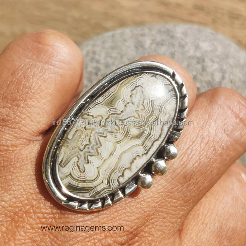 Nombre del producto:Anillo de plata esterlina 925 Ágata de encaje loco