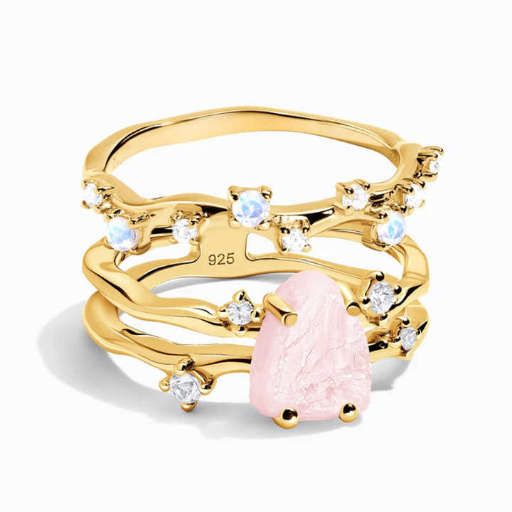 Conjunto de anillos de cuarzo rosa natural:Joyería de cuarzo rosa de alta gama