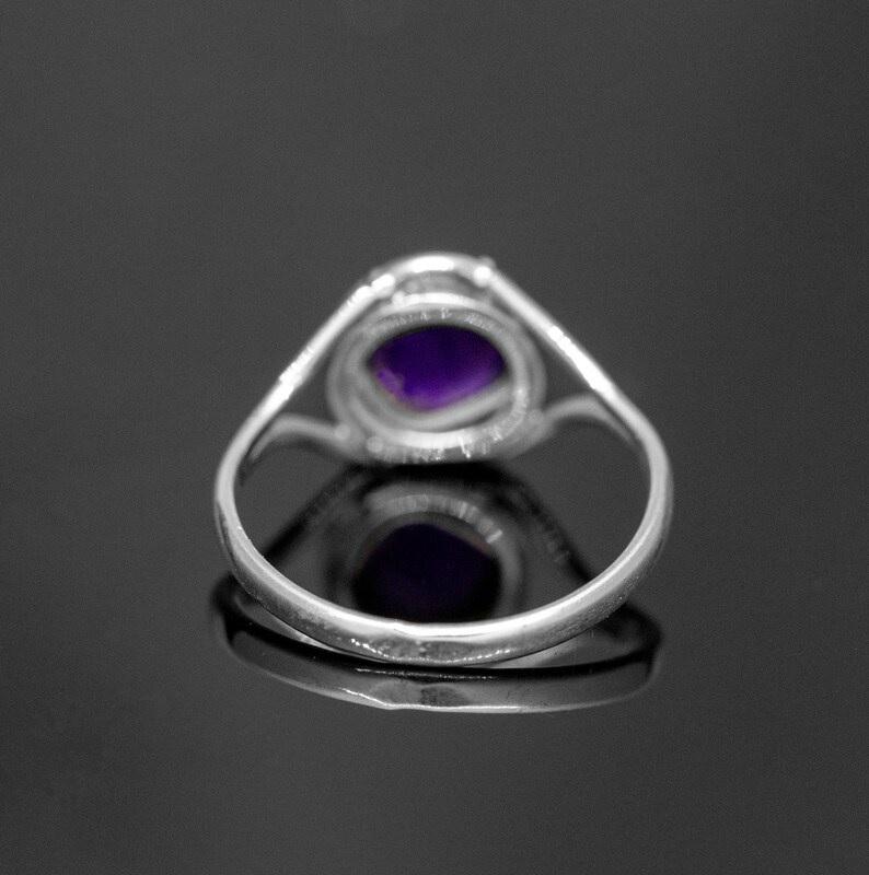 Anillo de amatista redondo de Plata de Ley 925 hecho a mano, joyería de cristal de piedras preciosas moradas, anillo elegante para mujer