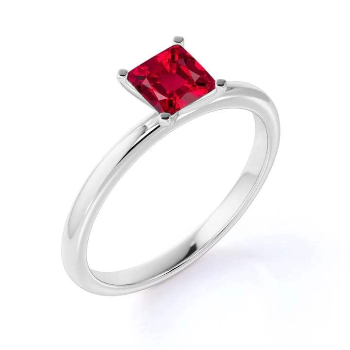 Anillo de Compromiso Clásico de Plata de Ley 925 con Rubí Solitario Creado en Laboratorio, Corte Princesa de 1 Quilate, para Mujer, para Bodas y Fiestas