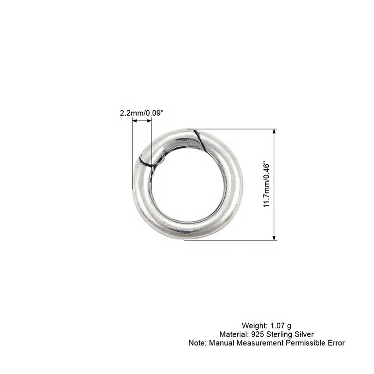 Cierre de Resorte Redondo de Plata de Ley 925, Soporte para Dijes, Clip de Anillo en O para Joyería, Pulseras y Collares, 10mm, 12mm, 14mm, 16mm, 18mm, 20mm