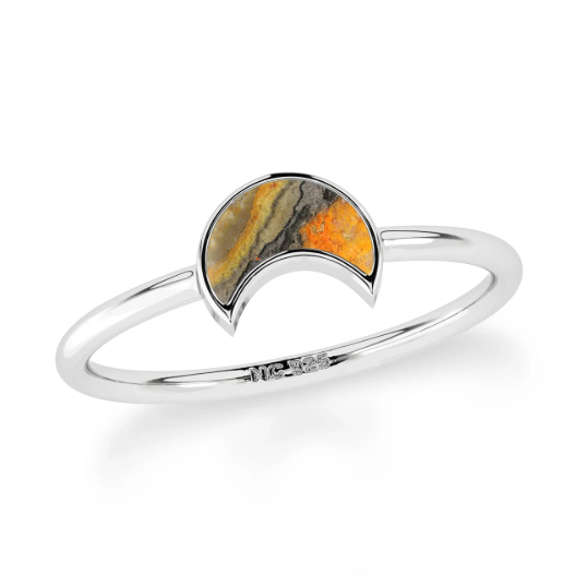 Anillo Apilable Clásico de Plata de Ley 925 para Hombre, Engaste de Bisel, Forma de Luna con Abeja, Rebanada Natural, Elegante y Moderno para Compromiso