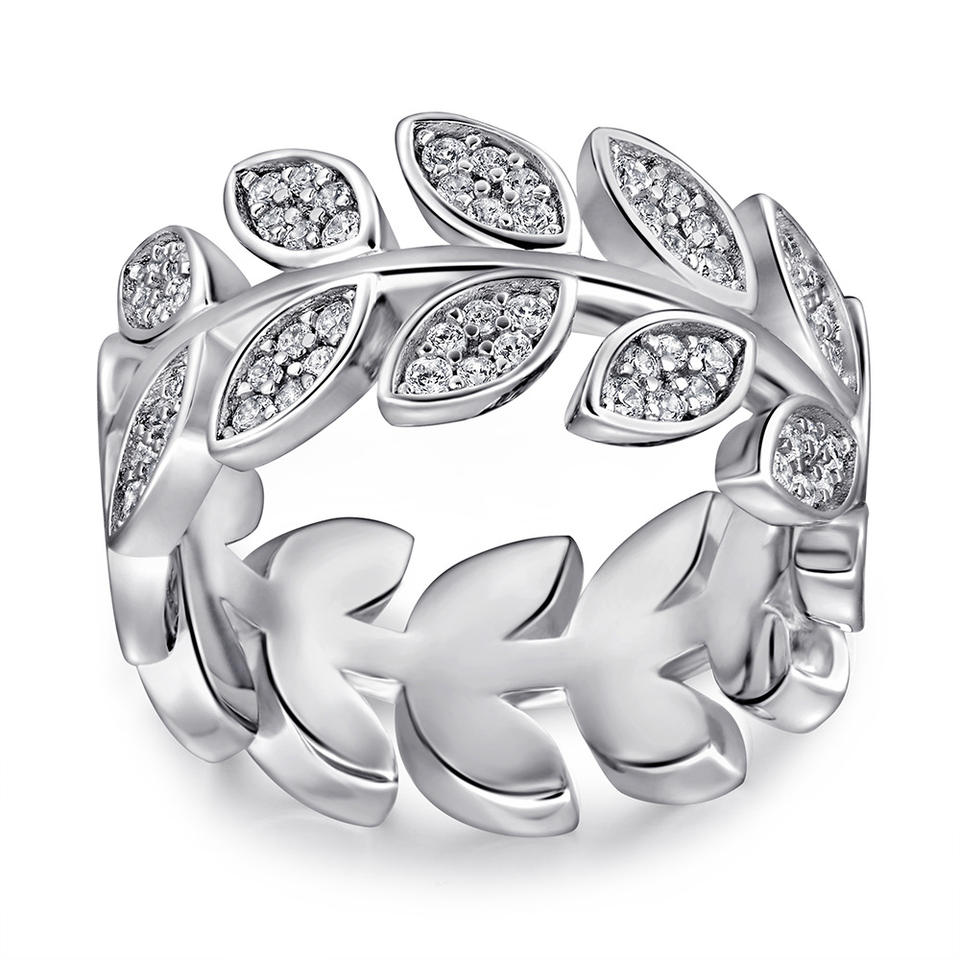 Conjunto de Tres Piezas de Plata de Ley 925 con Anillo de Hoja con Diamantes, Collar Espiga de Trigo y Pendientes para Mujer, Elegante y de Alta Gama con Circonita