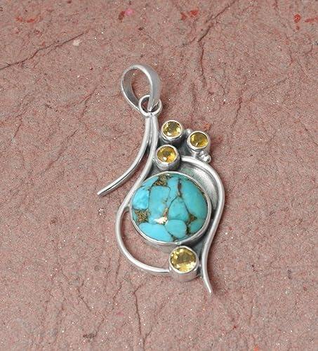 Colgante de collar de piedras preciosas de forma redonda de citrino turquesa de Plata de Ley 925, regalo de boda perfecto para el amor con joyería de sello 925