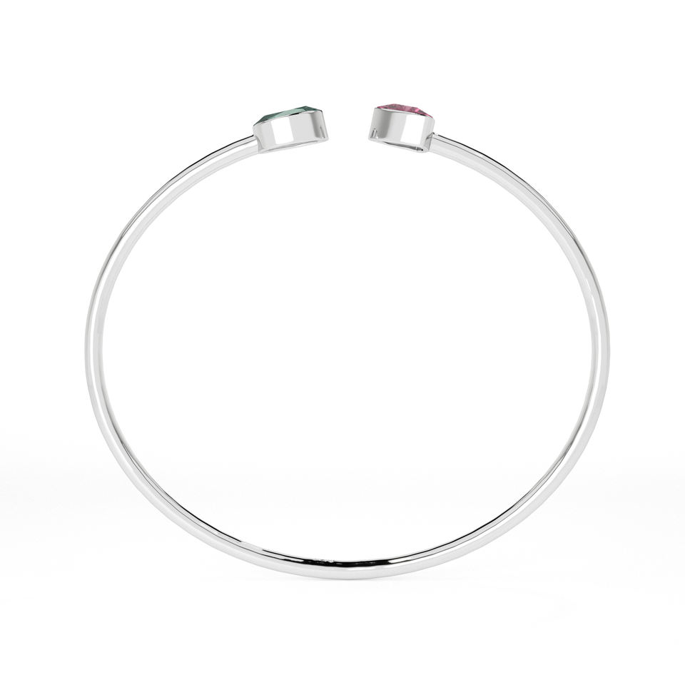 Pulsera de Plata de Ley 925 con Turmalina Rosa y Verde, Dos Formas, Corte Ovalado y Trillón, Engaste de Bisel, Moderna, Unisex, Acabado de Alta Calidad