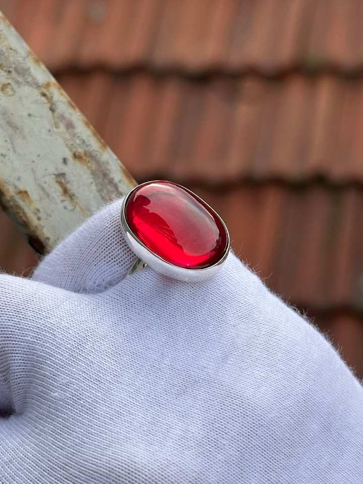 Palabra clave:Raw Ruby Stone Anillo de plata Minimal Gemstone