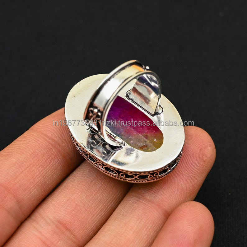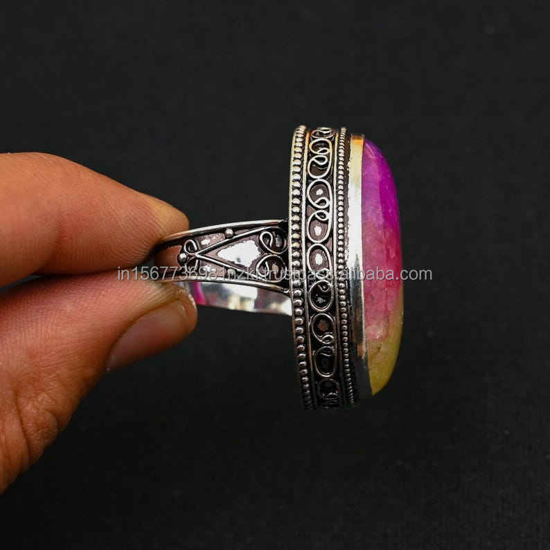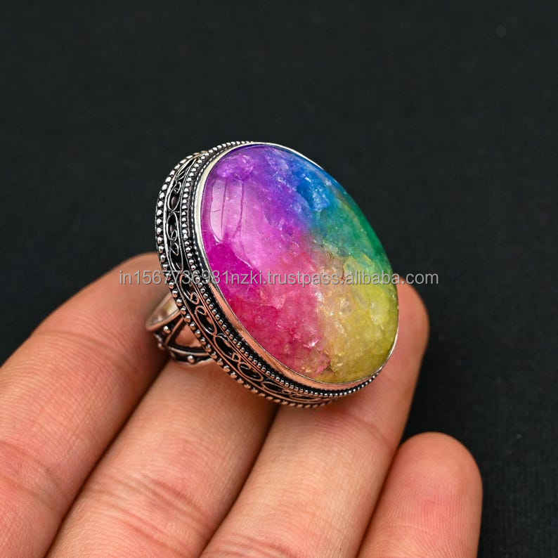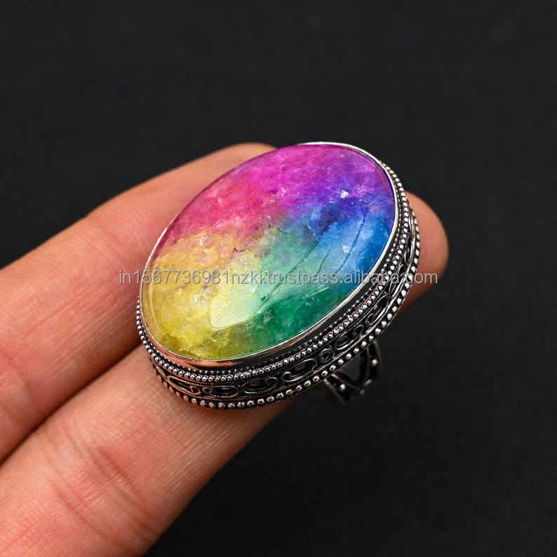 Nombre del producto:Anillo de Plata de Ley 925 Rainbow Solar Cuarzo
