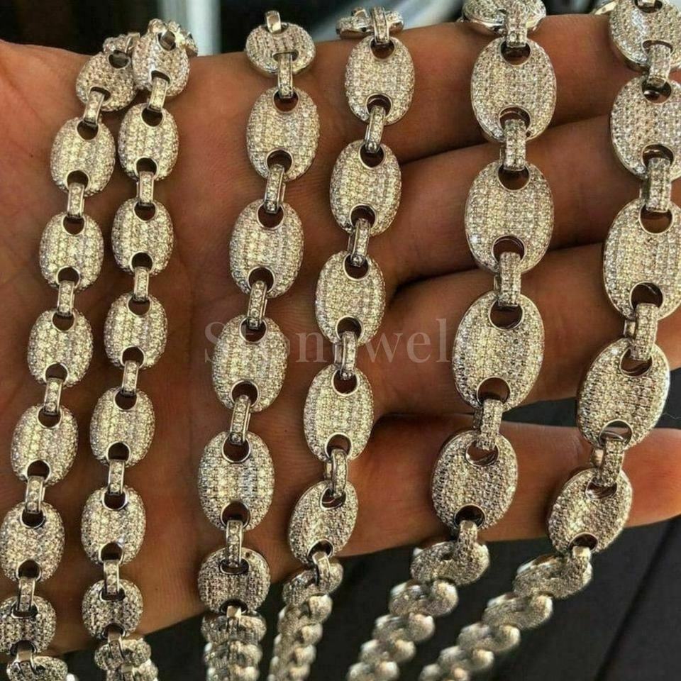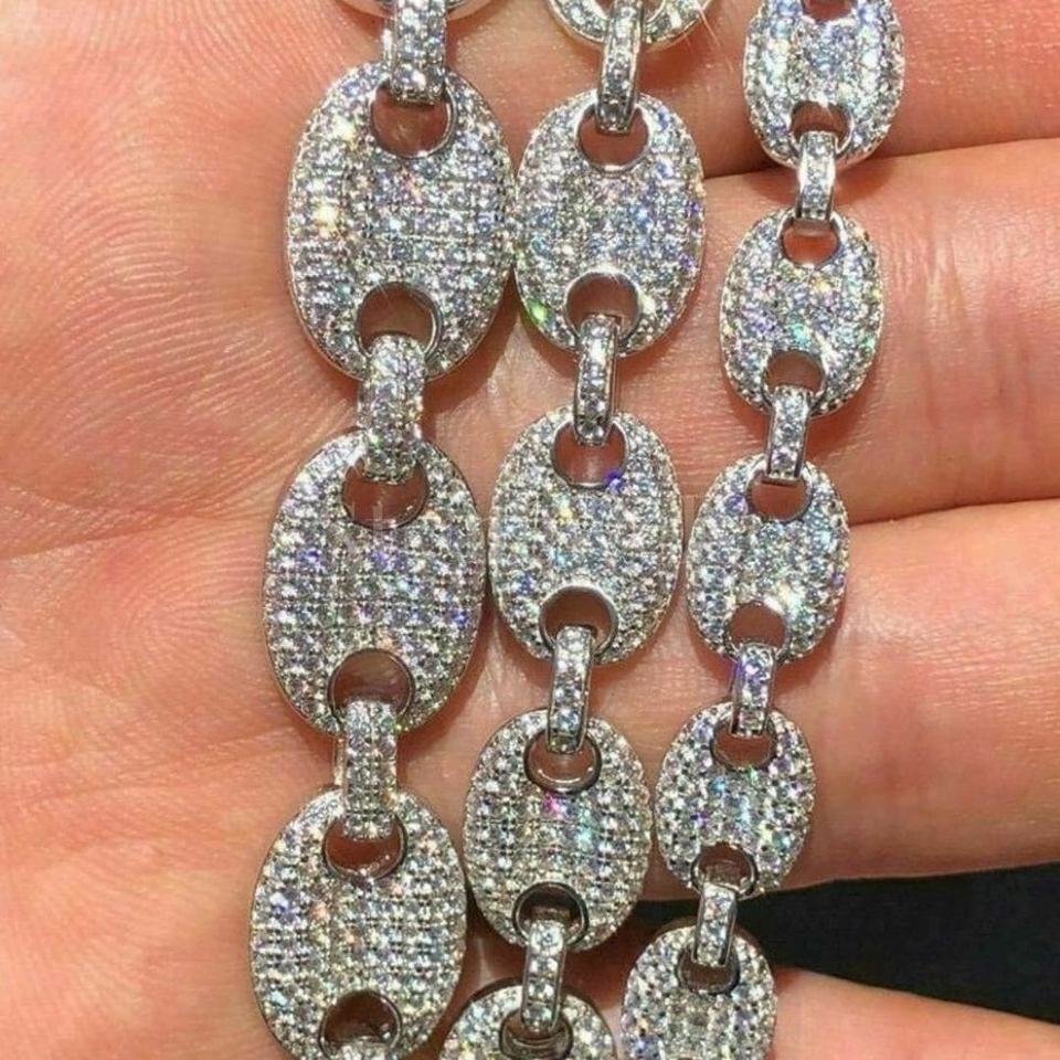 Número de Modelo:Silver Women's Iced Out Puffed Mariner Link Hip-Ho