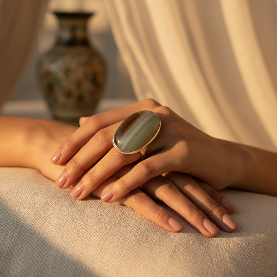 Anillo de Plata de Ley 925 para Mujer con Gema de Corte Ovalado, Anillo Boho con Piedras, Joyería Fina para Promesas y Ocasiones
