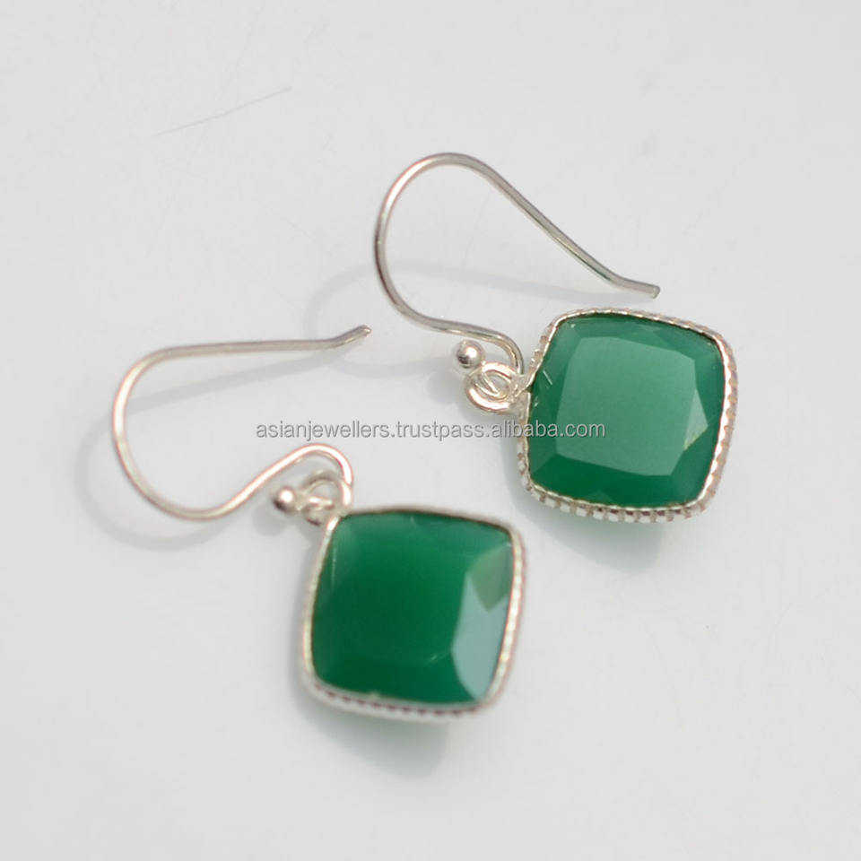 925 sterling silver green onyx gemstone bezel earrings