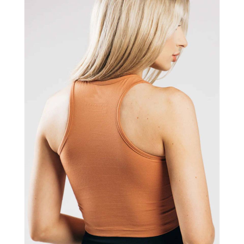94% algodón 6% Spandex cuello redondo sin mangas estilo Racerback larga línea arcilla mujer de rendimiento de cultivos tanque superior