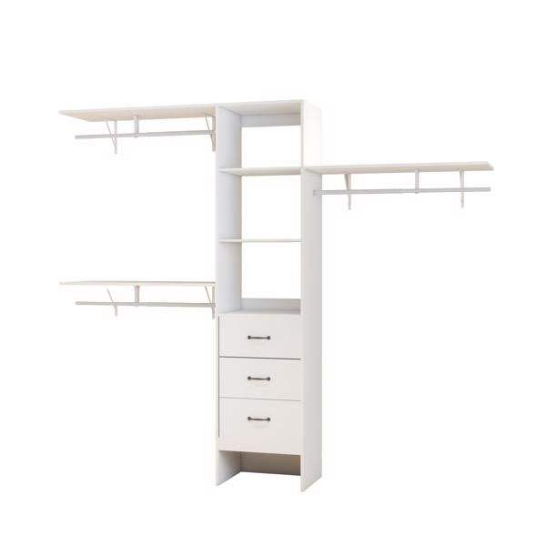 Sistema de Armario Vestidor de 96 Pulgadas (8 Pies) con 3 Estantes Ajustables, 3 Barras Extensibles para Colgar Ropa y 3 Cajones con Organizadores Integrados