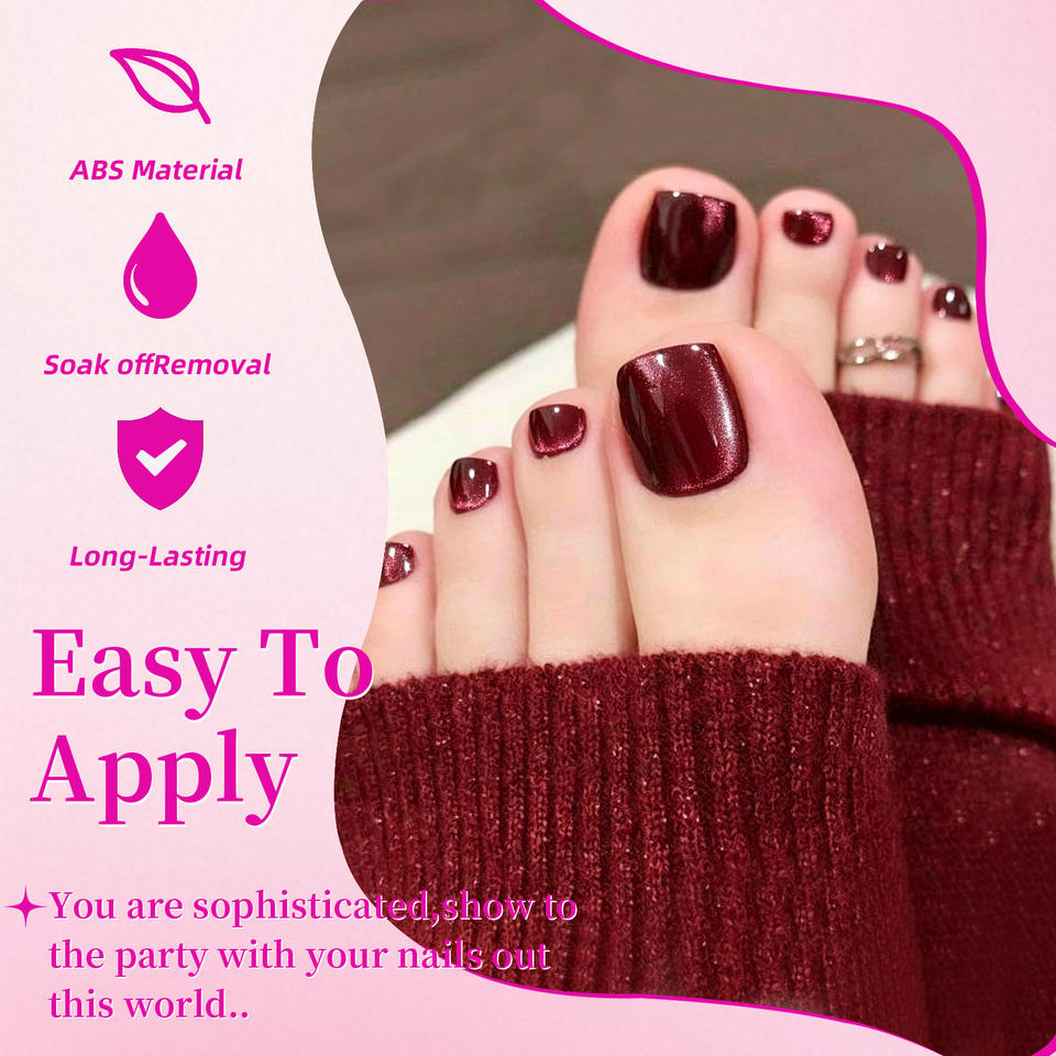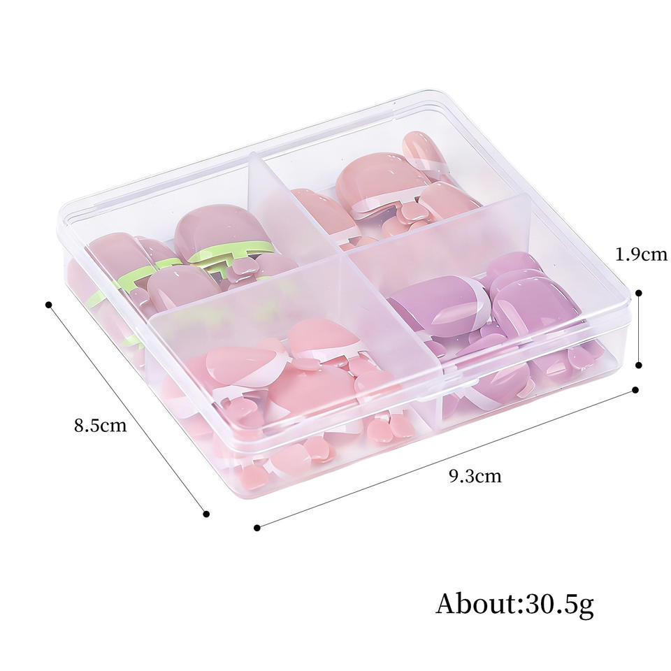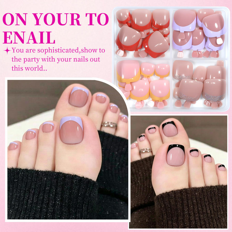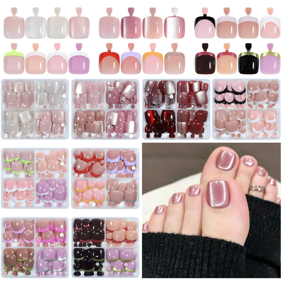 96 Uñas Postizas para los Pies con 4 Compartimentos, 12 Tamaños, Cortas, Cuadradas, con Diseño de Ojo de Gato/Francés/Brillantes, con Estuche de Almacenamiento