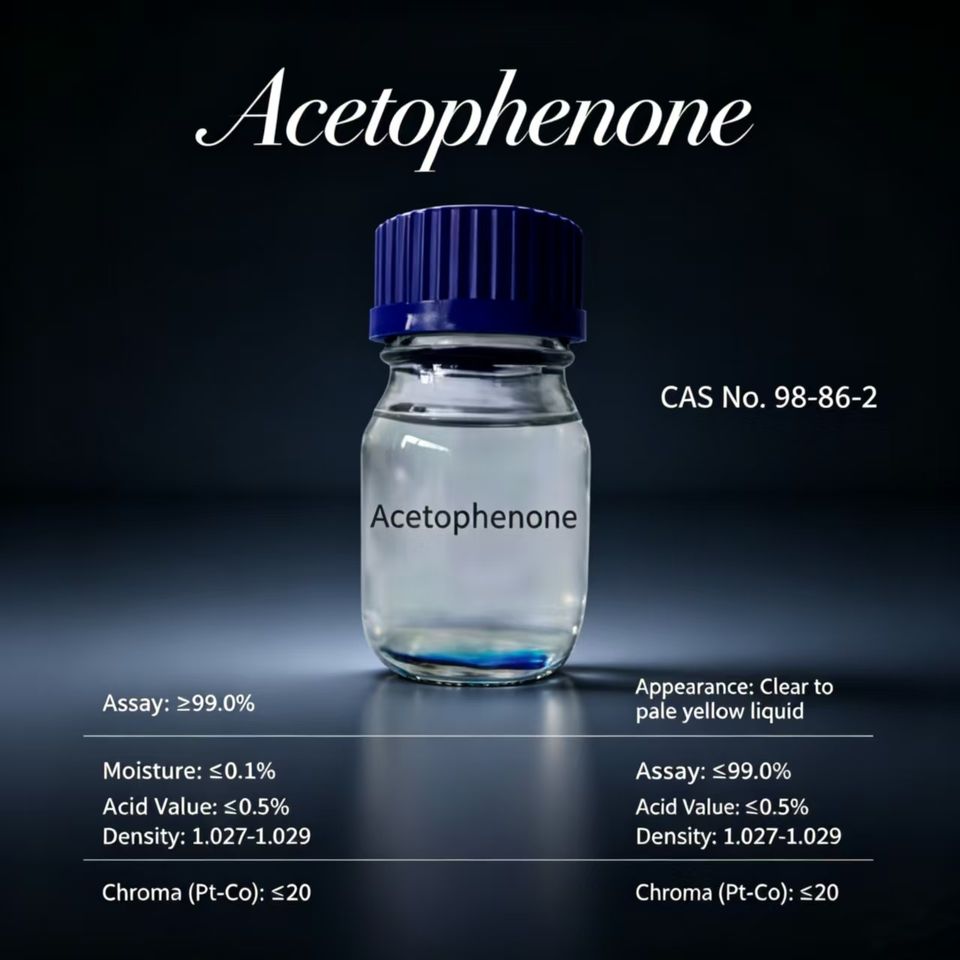 Acetofenona con 99% de Pureza CAS 98-86-2, Solvente de Alto Punto de Ebullición e Intermedio Orgánico para Estabilizador de PVC