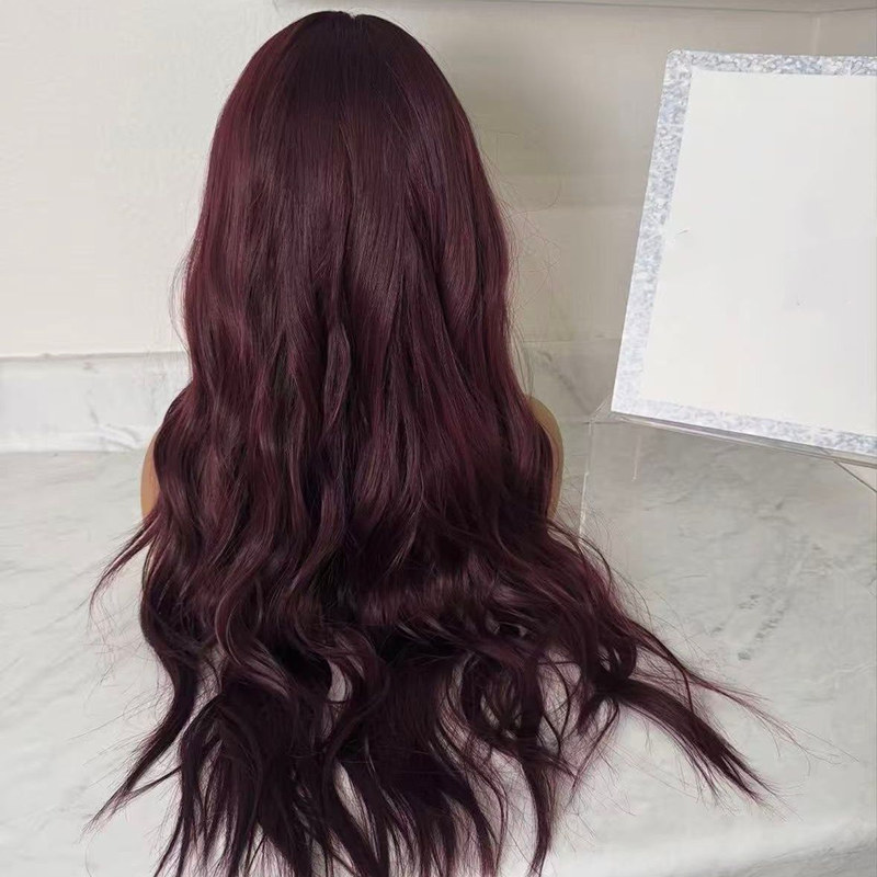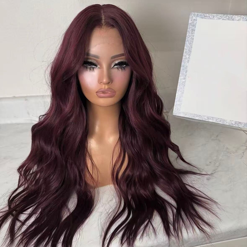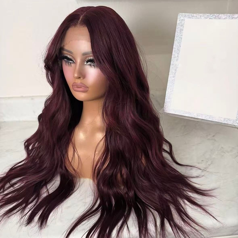 Pelucas de Cabello Humano Remy Vietnamita con Alineación de Cutículas, Color Borgoña 99J, Ondulado Natural, con Frente de Encaje Transparente para Mujer
