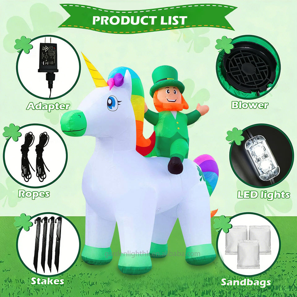 Product name:9FT Giant Inflatable Leprechaun Riding Unicorn with LED Lights