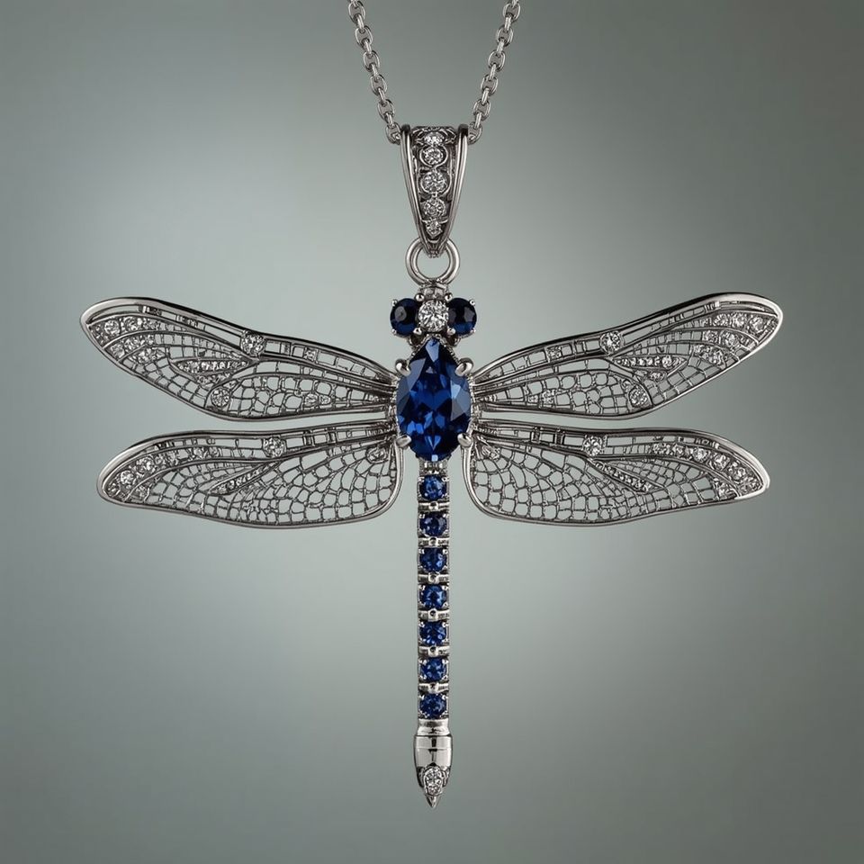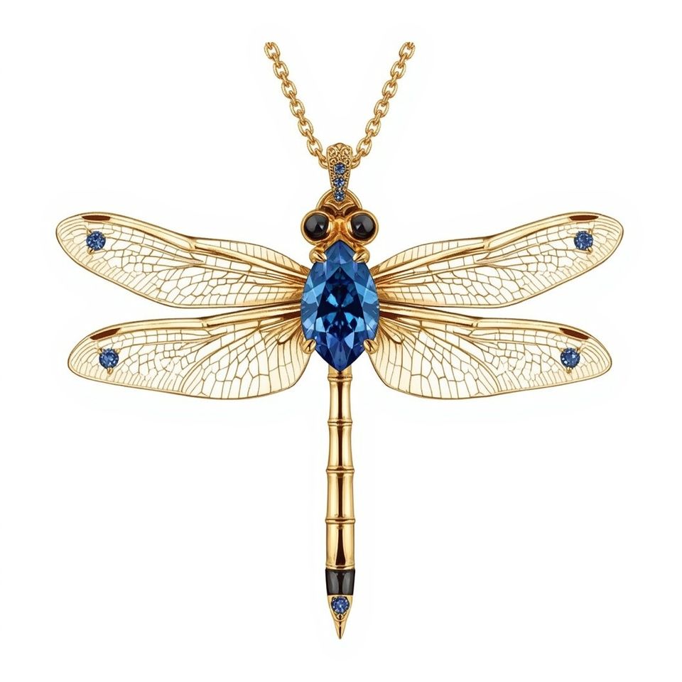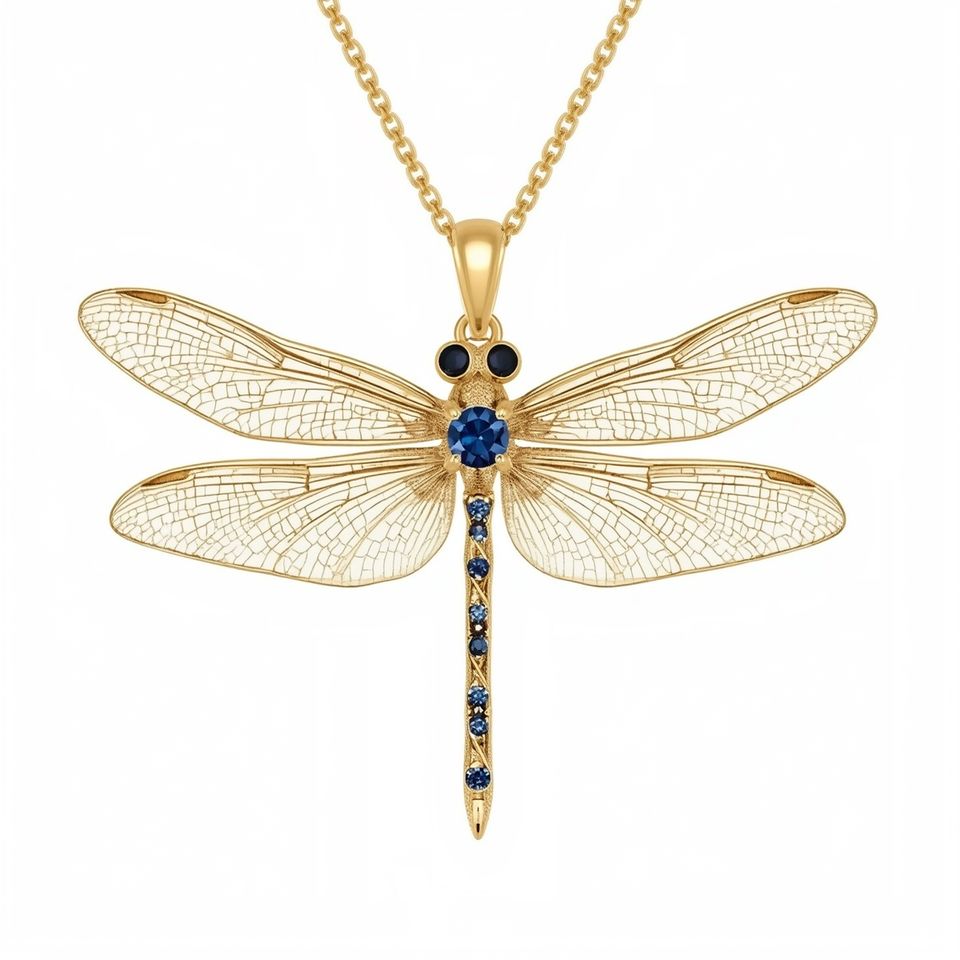 Colgante de Libélula de Oro Sólido de 9K con Gemas de Zafiro Azul, Cadena de Eslabones, Joyería Fina, Diseño Inspirado en la Naturaleza