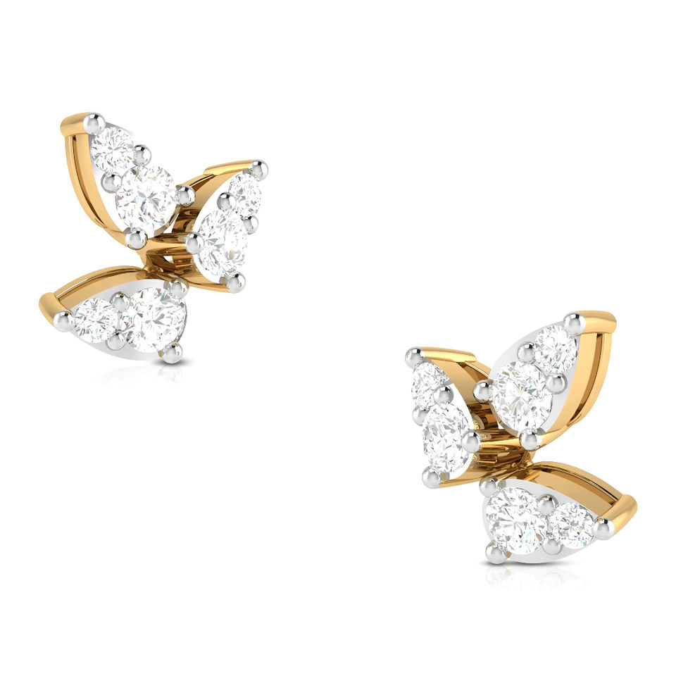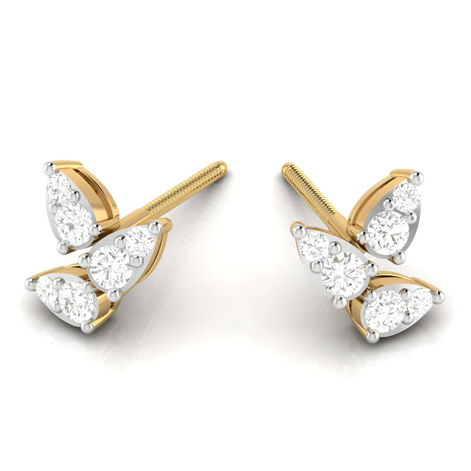 Pendientes de Oro Amarillo de 9K con Diamantes Cultivados en Laboratorio, Diseño de Tres Pétalos Marquise, Diamantes CVD, Regalo para Mujer