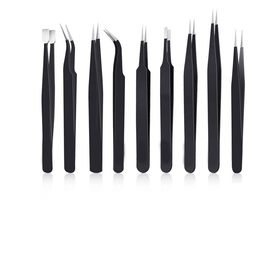 Juego de pinzas de precisión de 9 Uds., pinzas de acero inoxidable antiestáticas mejoradas, soldadura electrónica, joyería de trabajo de laboratorio
