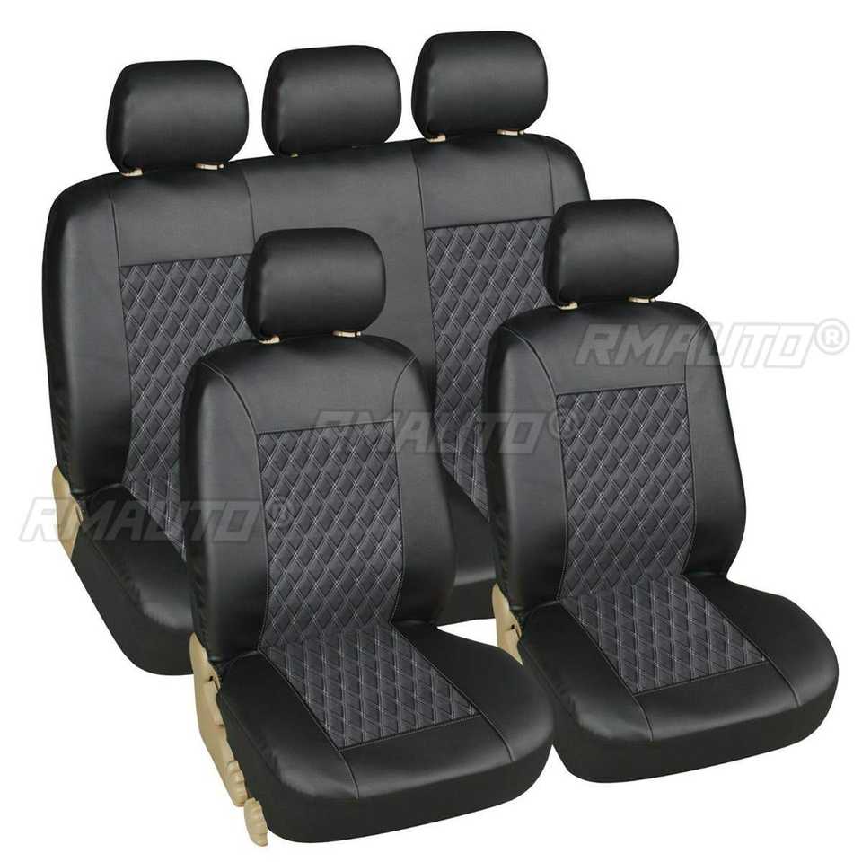 Juego de 9 Fundas de Asiento Delanteras Completas para Auto de 5 Plazas, Color Gris/Negro, Cuero PU Impermeable, Universal para BMW E46/Honda/Ford