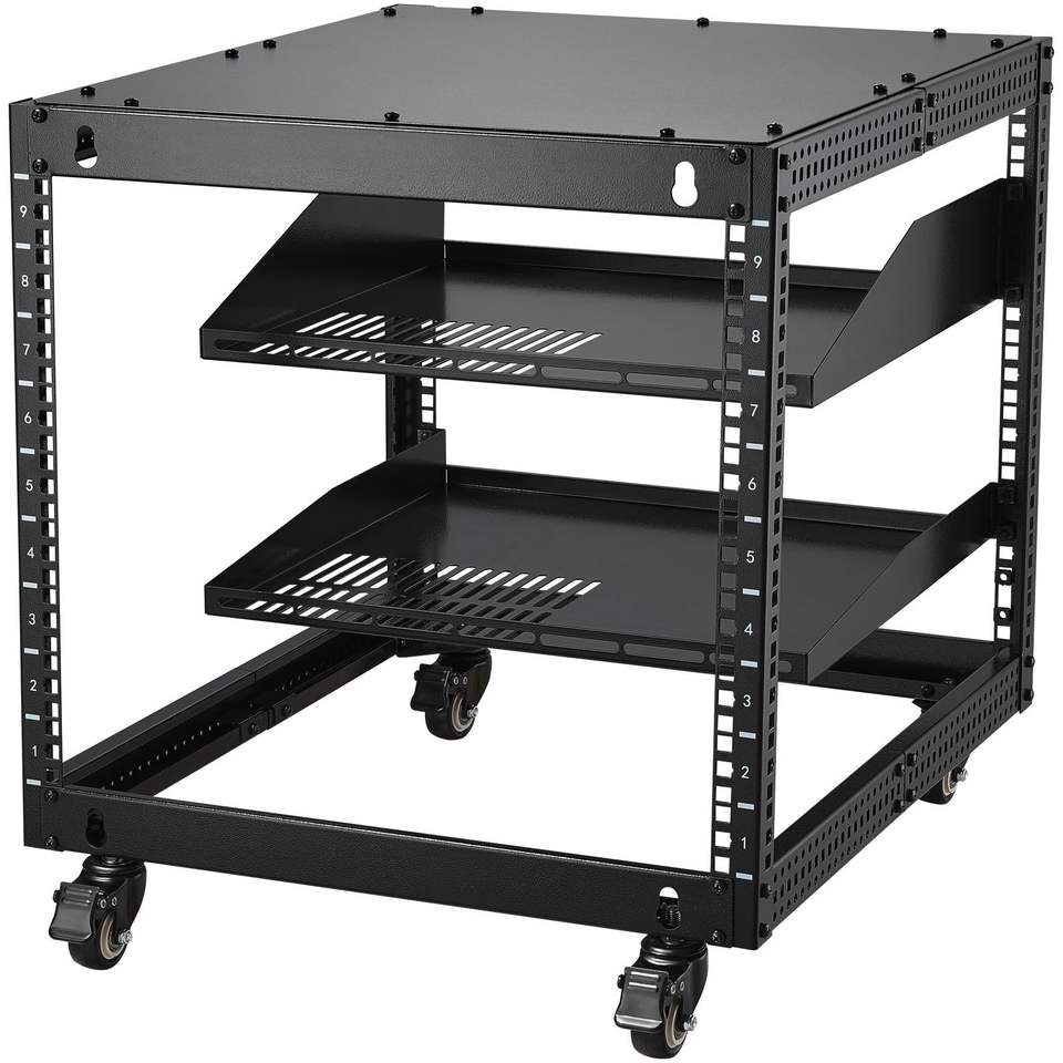 Rack de Servidor Abierto de 9U con Profundidad Ajustable de 23-40 Pulgadas, Ruedas Giratorias de 360 Grados, Rack de Red para Montaje en Pared