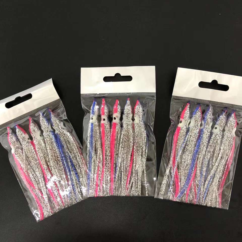 Señuelo de calamar suave luminoso de PVC de 9cm, falda de pulpo estampada para pesca de carpa en el lago, especies objetivo, curricán