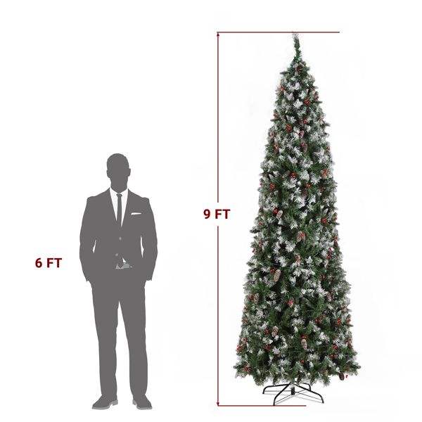 Árbol de Navidad Automático de PVC de 2.7m con Forma de Lápiz Puntiagudo, Verde, con Luces Blancas Cálidas de 460 LED, 1298 Ramas, 8 Modos